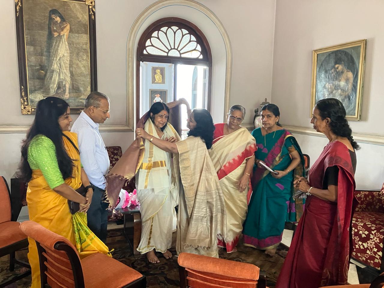 Kerala Hindi Sahitya Academy (KHSA) felicitated Her Highness Smt Aswathy Thirunal Gowri Lakshmi Bayi Thampurati for achieving the prestigious Padma Shri Award at her residence.